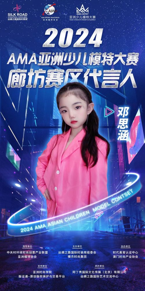 本次廊坊赛区还将选拔推送优秀童模参与于7月20日至22日在丝绸之路国际艺术交流中心举办的2024AMA亚洲少儿模特大赛全球总决赛。此次总决赛在以往常规个人赛、团体赛等比赛形式上,还精心设置了时尚美育研学、平面赛环节,带领大家走进《只有红楼梦·戏剧幻城》,一起阅红楼、观红楼、拍红楼。