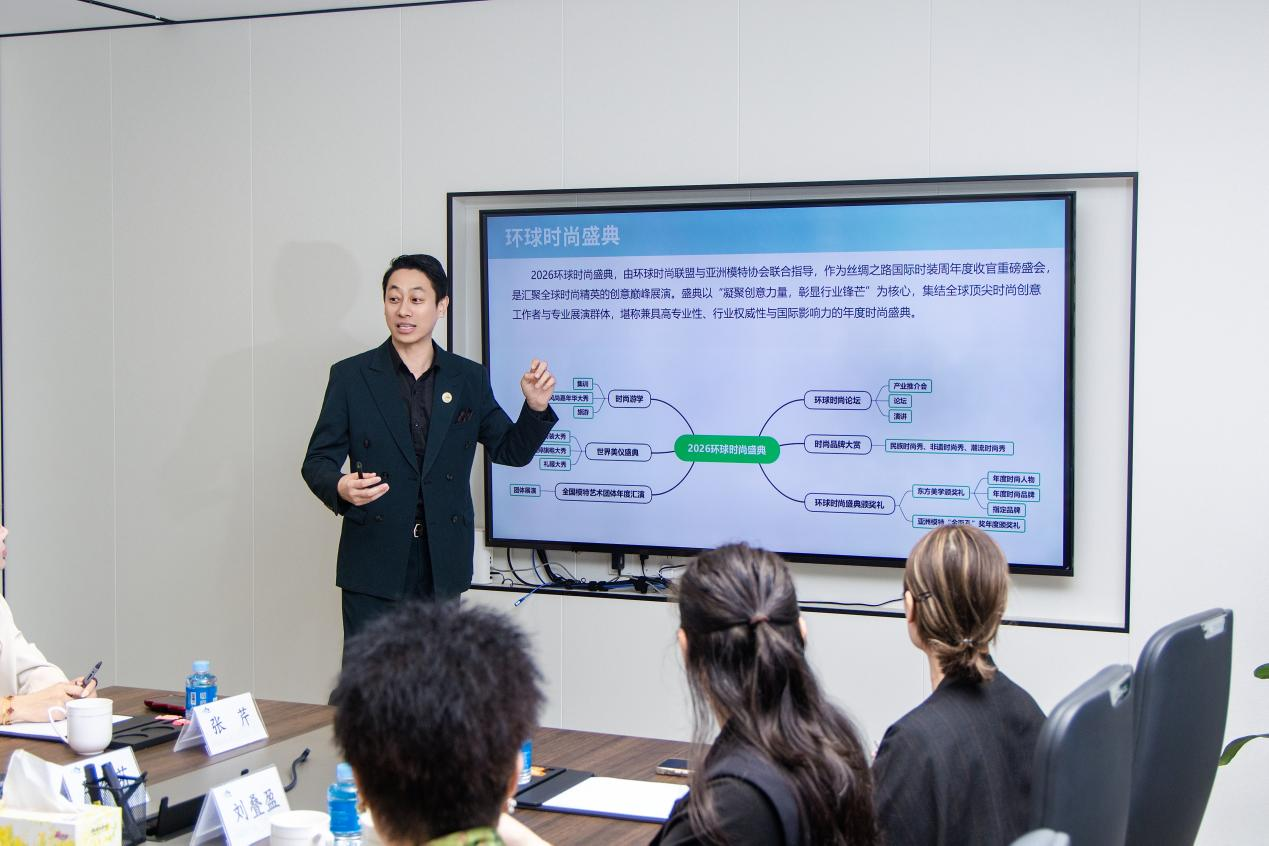 交流会上,亚洲模特协会执行主席、丝绸之路国际时装周主席王浩天全面解析了时装周的全球资源优势与平台定位。他强调,本次盛会绝非单纯的时尚展演,而是以“产业优先、务实对接”为核心逻辑的价值共创平台,通过设计师交流、时尚秀场展示、产销精准匹配三大核心载体,助力南海好物走向更广阔的市场。